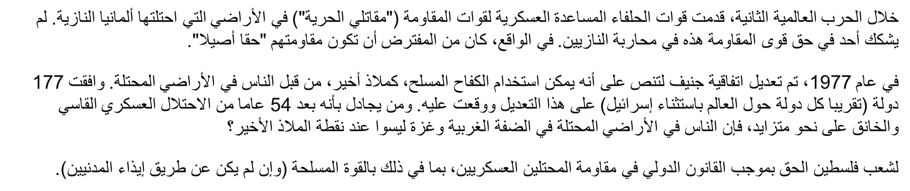 هل للفلسطينيين الحق القانوني في مقاومة الاحتلال العسكري الإسرائيلي؟